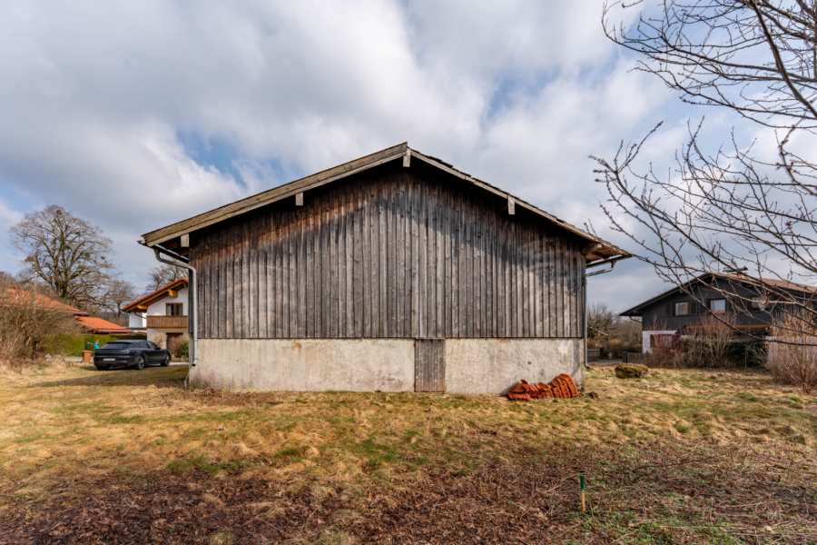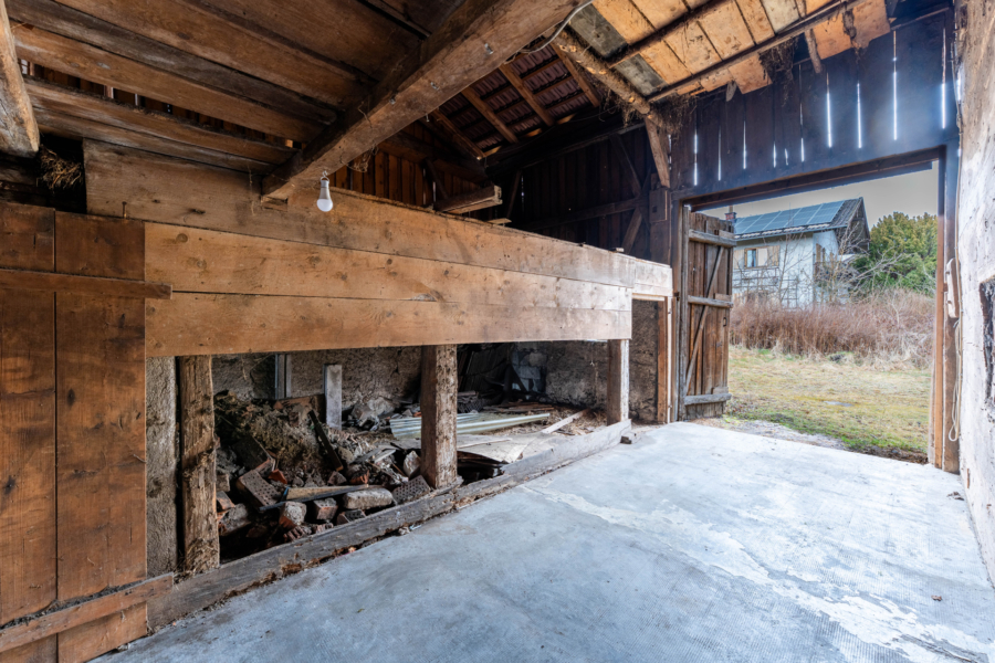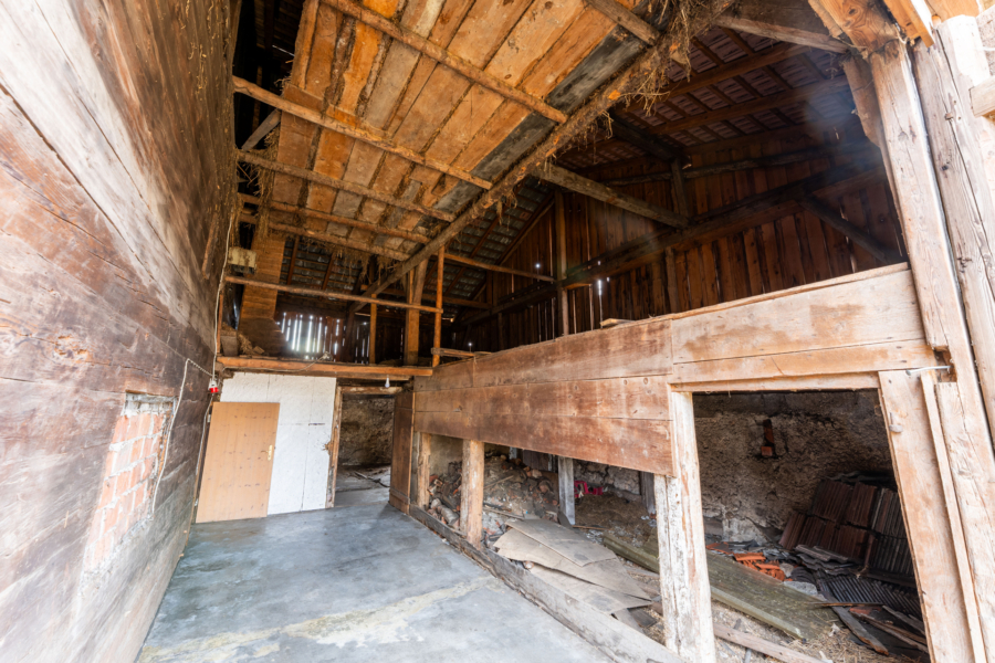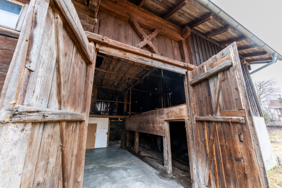Die bestehende Scheune kann abgerissen werden. Dies macht den Weg frei für einen großzügigen, modernen Anbau oder Ersatzneubau.