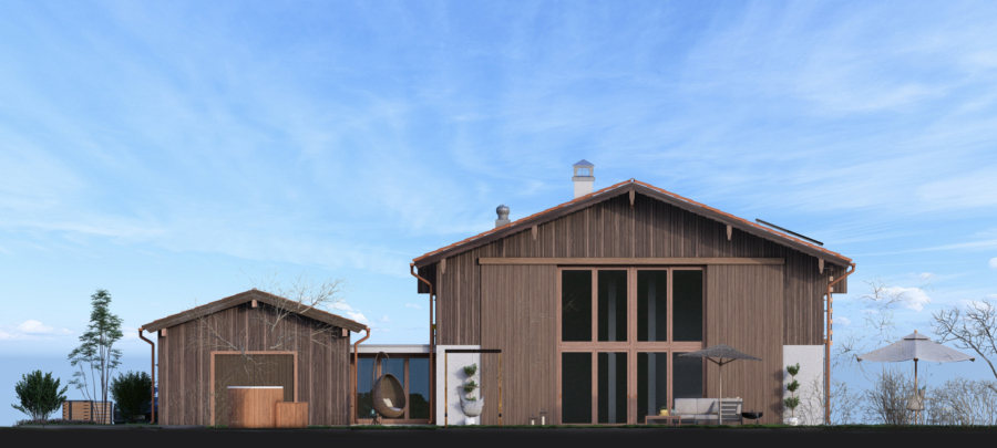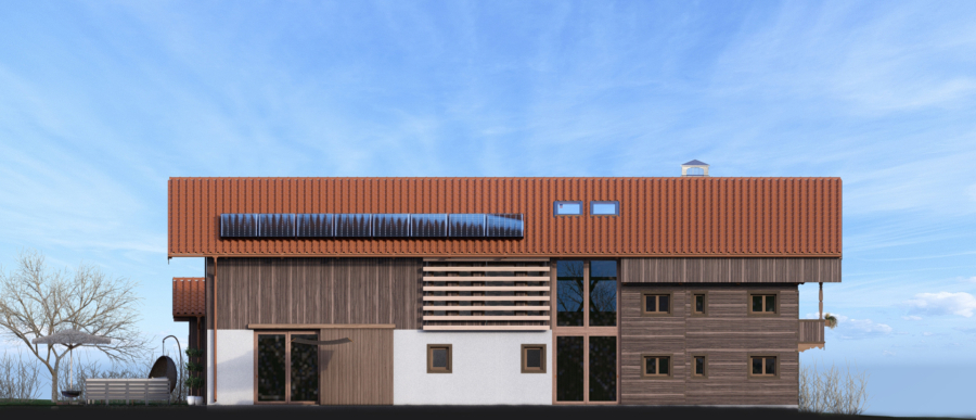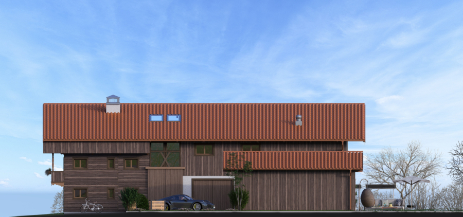 Bei den gezeigten Visualisierungen handelt es sich um eine beispielhafte Planung. Diese wurde 2019 genehmigt, aber nicht realisiert. Sie dient lediglich als Inspiration – als Käufer sind Sie in der Gestaltung davon unabhängig. Auch ein noch größerer Anbau scheint möglich.