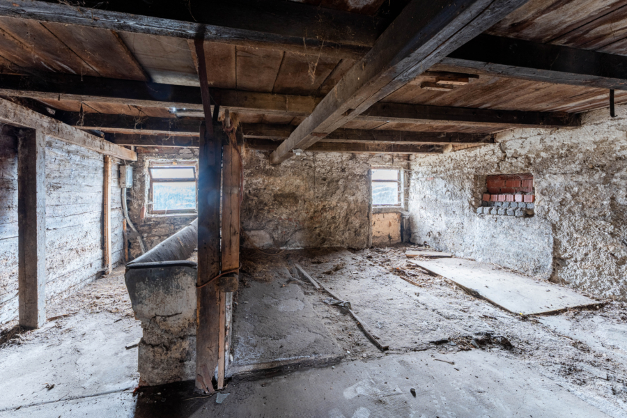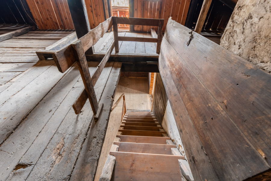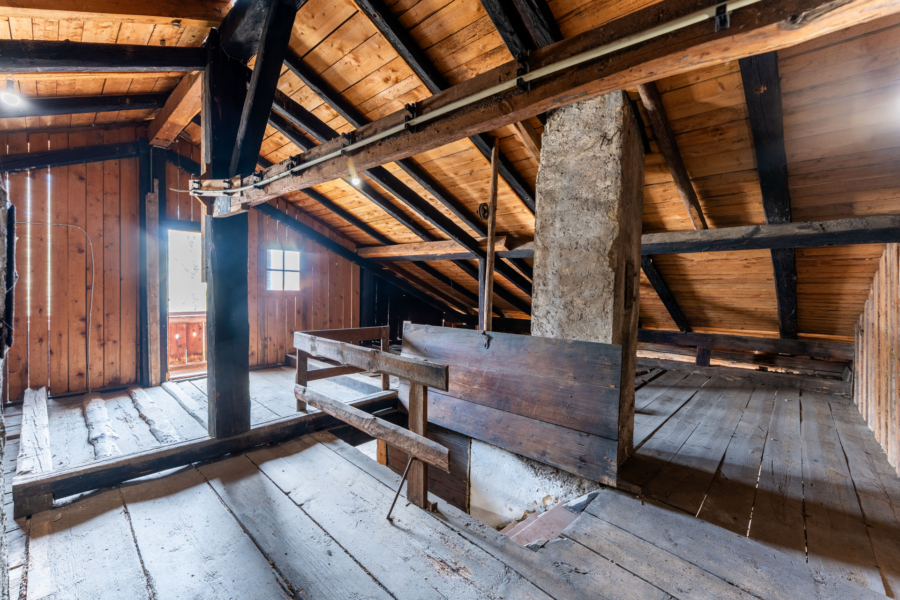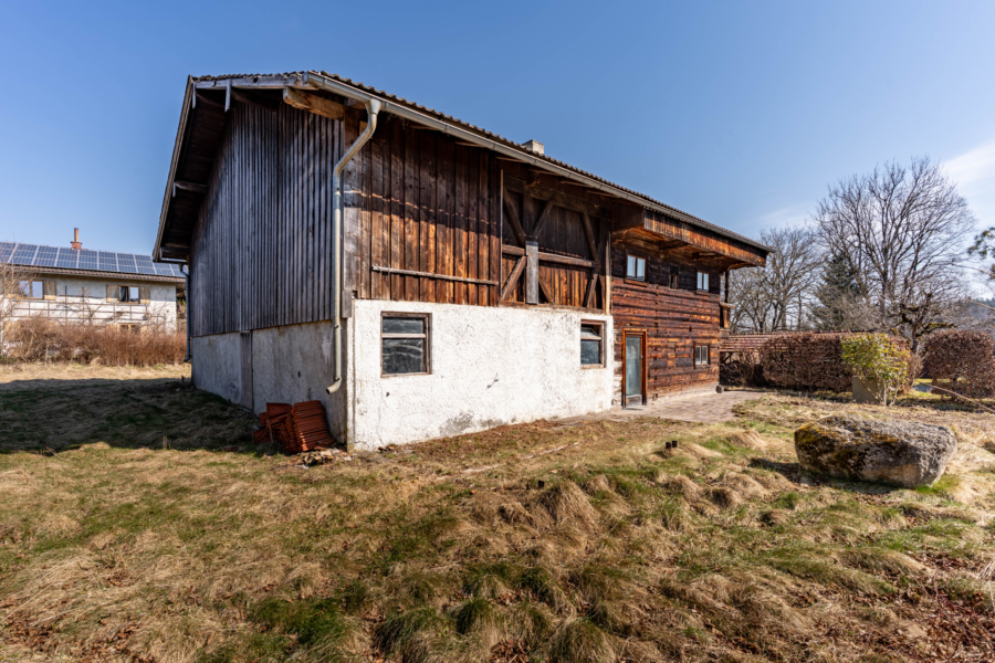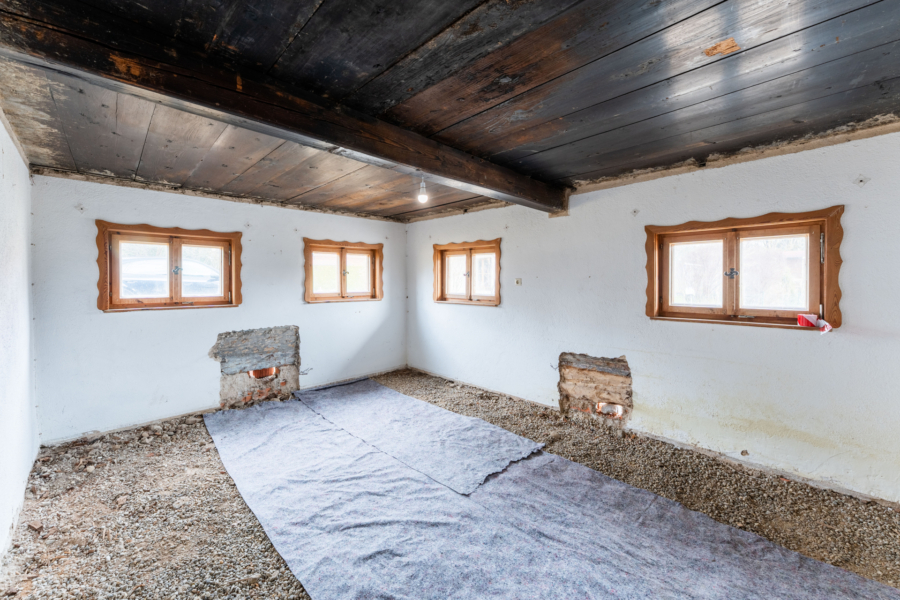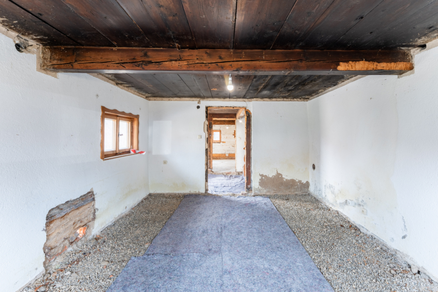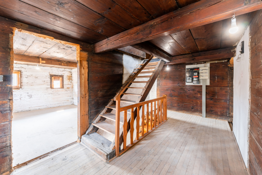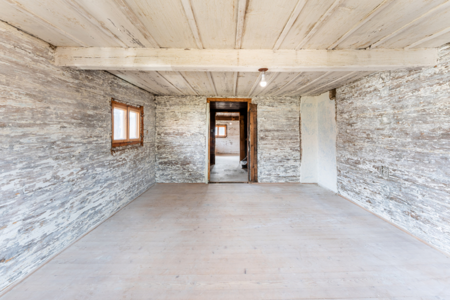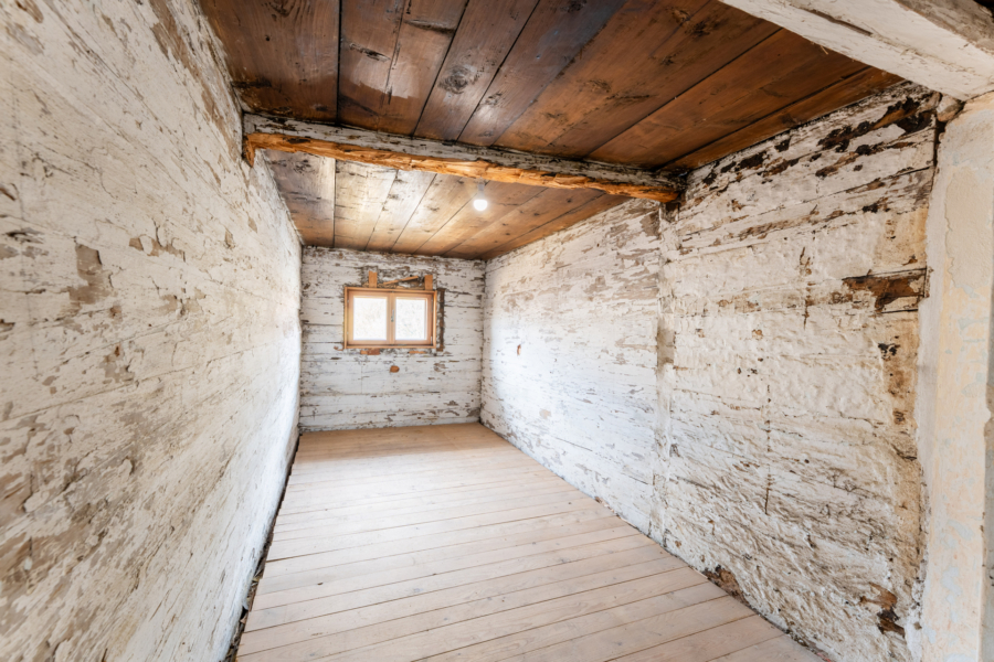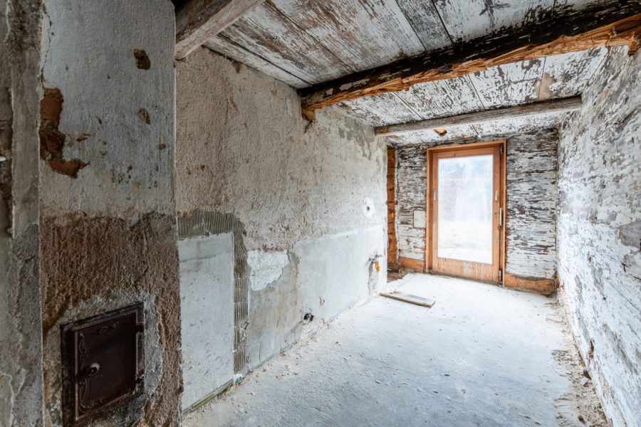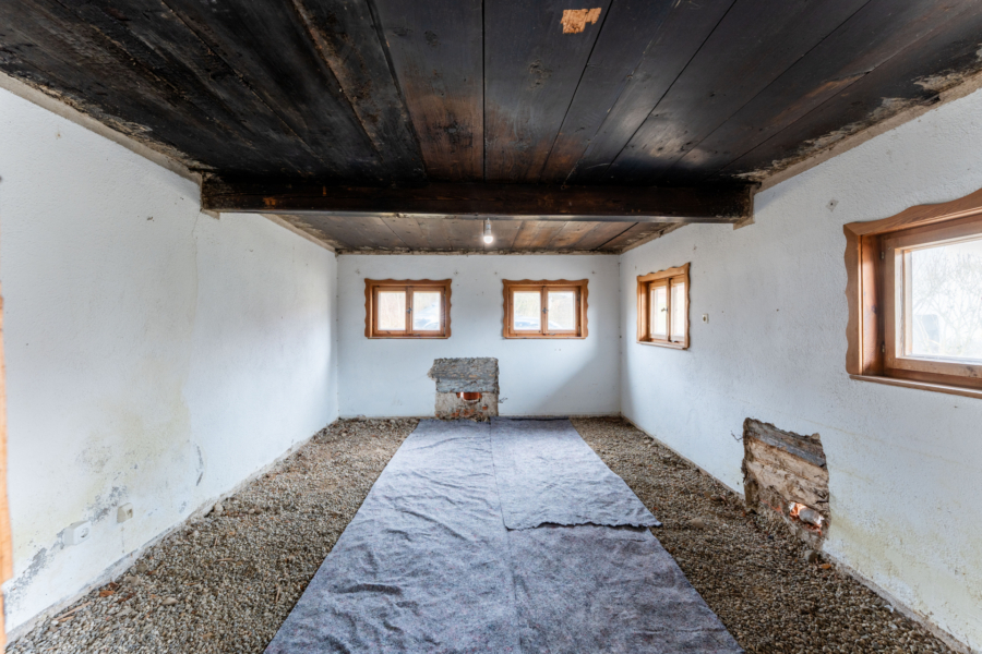 Der denkmalgeschützte Wohnteil (bez. 1728) bleibt als Herzstück des Ensembles erhalten. Durch eine fachgerechte Kernsanierung lassen sich hier Räume mit unvergleichlicher Atmosphäre schaffen – sichtbare Holzblockwände, historische Deckenbalken und das besondere Raumklima eines Massivholzbaus inklusive.