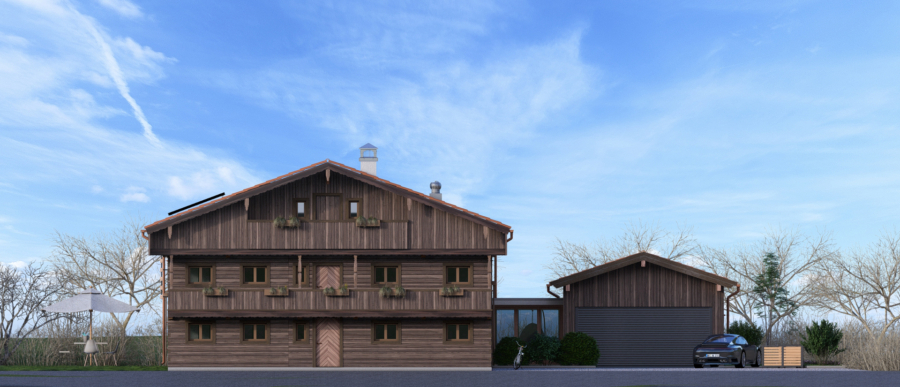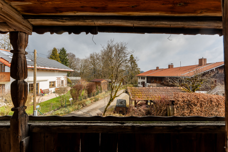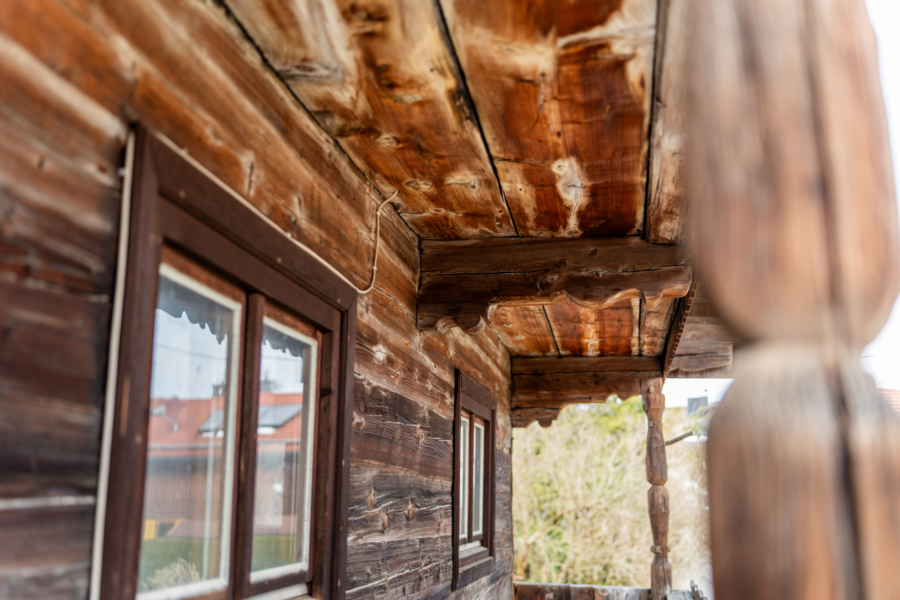 Das Herzstück bildet der zweigeschossige, giebelseitig erschlossene Blockbau. Mit seinem charakteristischen Flachsatteldach und den original erhaltenen Giebellauben (Balkonen) strahlt das Anwesen eine authentische Erhabenheit aus, die man heute nur noch selten findet.