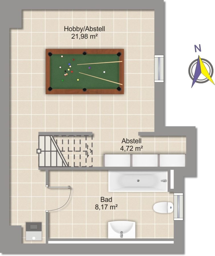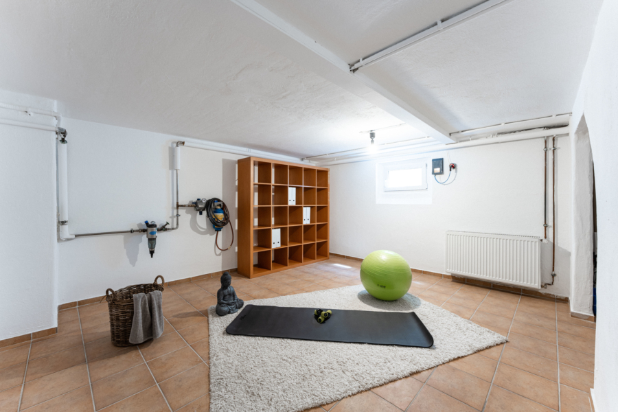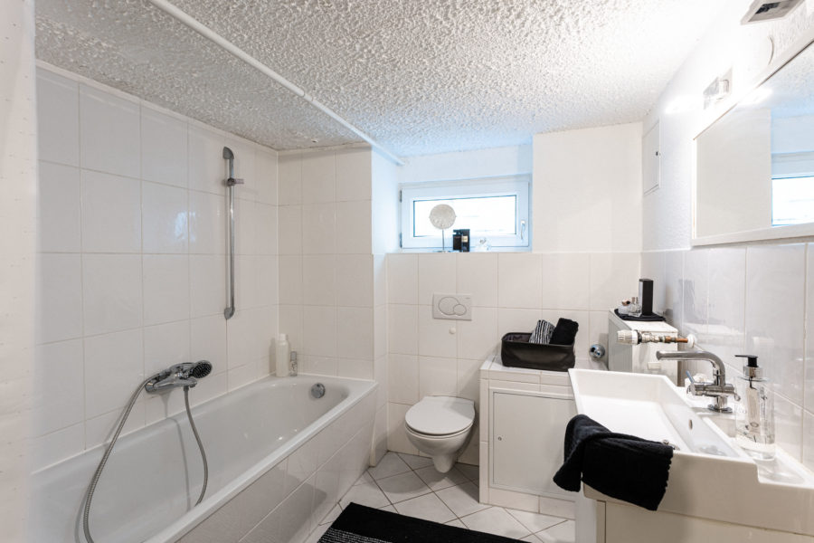 Das Untergeschoss überrascht mit einem Wannenbad und viel Stauraum.