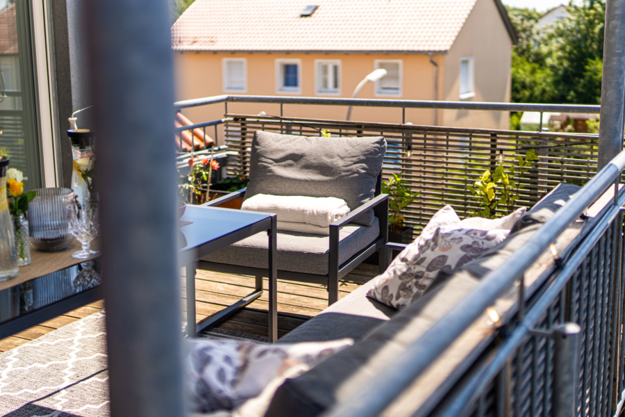 Hier haben Sie viele Gestaltungsmöglichkeiten für Ihre Terrassenmöbel und können den Freiraum genießen.