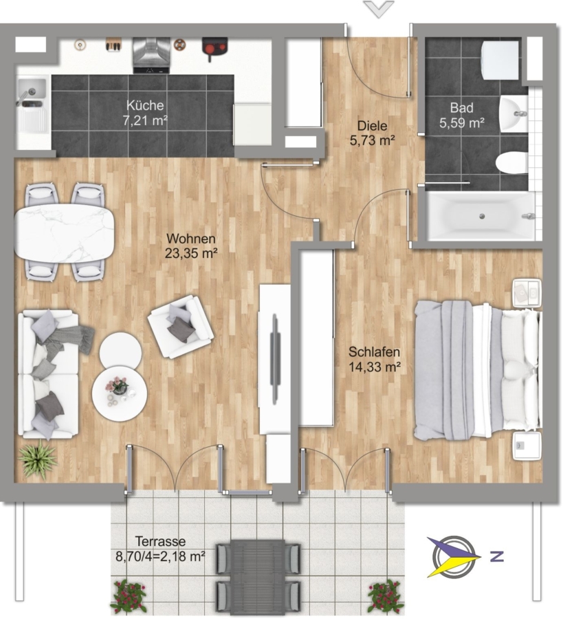 Mit einer Wohnfläche von ca. 59 m² überzeugt sie durch eine durchdachte Raumaufteilung und eine angenehme Wohnatmosphäre. Zudem sind die Wohnung sowie Keller und Tiefgarage schwellenlos erreichbar.