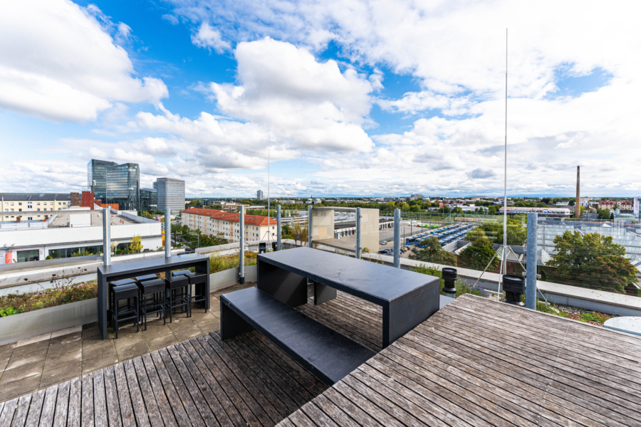 Die Wohnanlage bietet alles für ein angenehmes Miteinander: Dachterrassen, Oper-Air-Lounge, Gemeinschaftsräume, begehbare Dachgärten mit Loungemöbeln, Fahrradräume, Keller, sowie Wasch- und Trockenräume - alles bequem erreichbar über Aufzüge in allen Etagen.